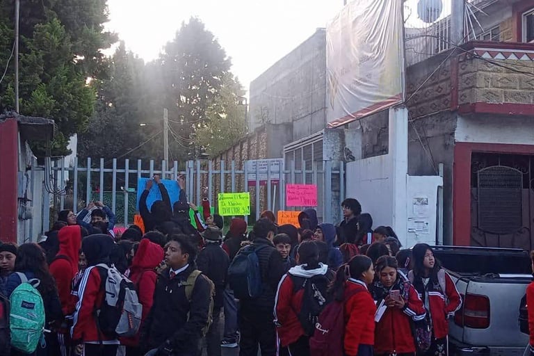 Alumnos y padres de familia del CBT Chimalpopoca se manifestaron este lunes en la entrada del plantel para exigir claridad sobre la reciente destitución del director Juan Víctor García y para denunciar presuntas conductas inapropiadas por parte de integrantes del equipo directivo y de orientación escolar.