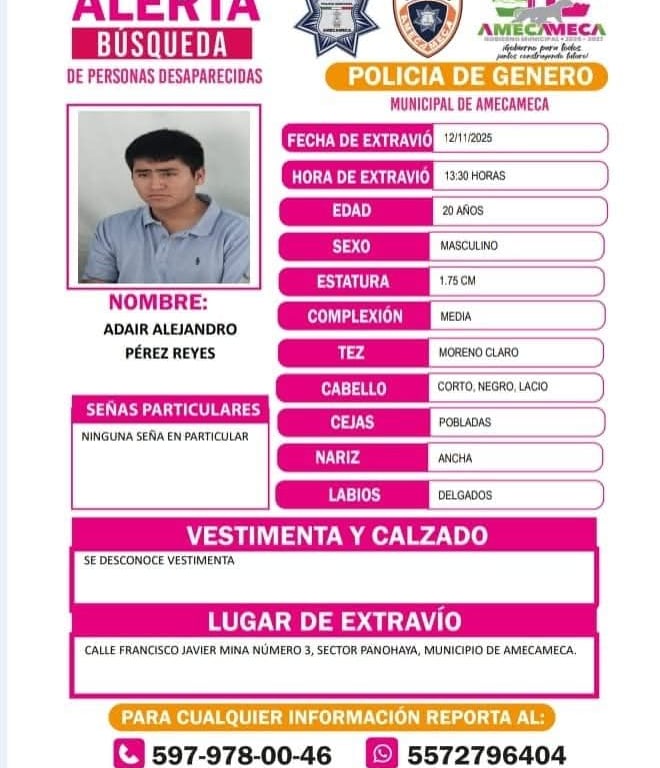 Apartado destinado a la difusión de cédulas de búsqueda y reportes de personas desaparecidas, con el propósito de apoyar a las familias y autoridades en su localización mediante la colaboración ciudadana.